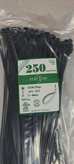 Cable Ties 250x4.8mm Black 100/pkt