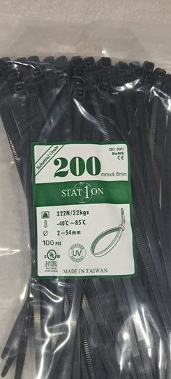 Cable Ties 200x4.8mm Black 100/pkt