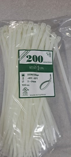 Cable Ties 201x4.8mm Natural 100/pkt