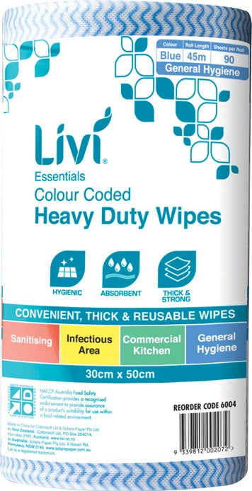 Livi 6004 Commercial Wipes 300x500mm 70gsm Blue 90 sheets/roll 4 rolls/ctn
