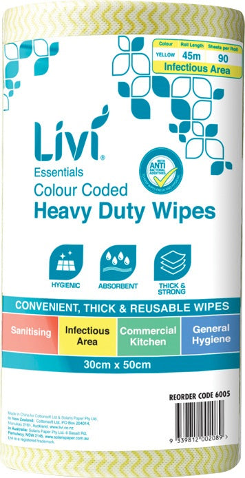 Livi 6005 Antibacterial Commercial Wipes 300x500mm 70gsm Yellow 4 rolls/ctn