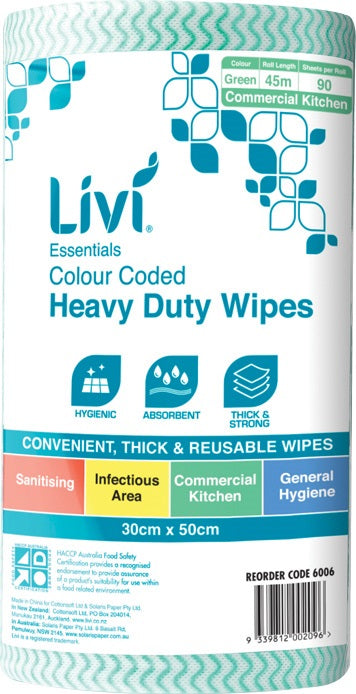 Livi 6006 Commercial Wipes 300x500mm 70gsm Green 4 rolls/ctn