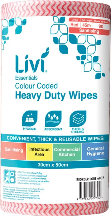 Livi 6007 Commercial Wipes 300x500mm 70gsm Red 4 rolls/ctn