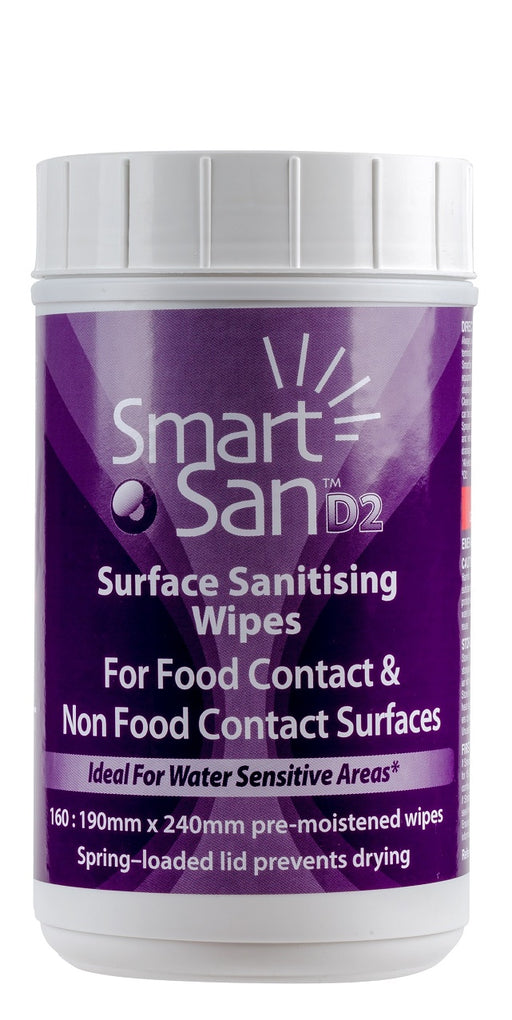 SKU 550SAD2WIPEAttwoodsIn stock• Surface wipes pre-moistened with Smart San D2, a ready to use, rapid kill, no-rinse and highly evaporative surface sanitiser approved for food co...