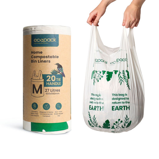 Ecopack Compostable Kitchen Liners POR 27L 500x585mm 20mu Natural 20/roll 20 rolls/ctn