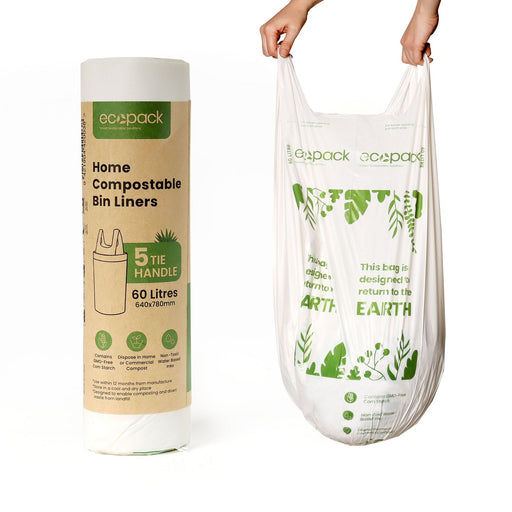Ecopack Compostable Bin Liners POR 60L 640x950mm 30mu Natural 5/roll 30 rolls/ctn